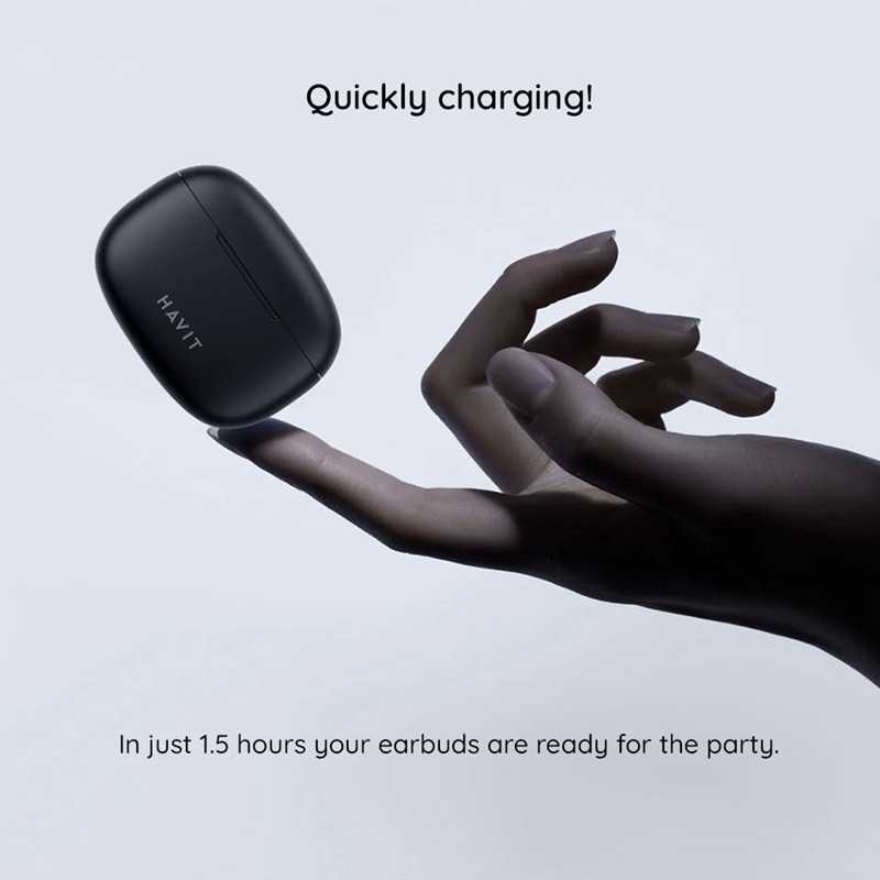 Havit TW967 Pro si oblíbíte i díky modernímu provedení. Sluchátka jsou dokonale hladká a lehká. Kvalitní zvuk s křišťálově čistými výškami a dunivými basy je dílem měničů o průměru 10 mm. Obě sluchátka mají integrované dotykové ovládání, pomocí kterého můžete nejen ovládat hudbu, ale i přijmout hovor.