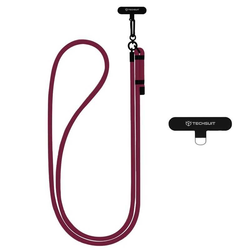 1x Techsuit Crossbody popruh šňůrka na krk, délka 140 cm, tmavě červená