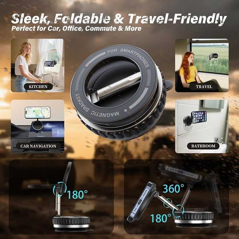 Univerzální držák telefonu s výkonnou vakuovou přísavkou a magnetickým uchycením, který zajistí maximální stabilitu vašeho zařízení v autě i doma.