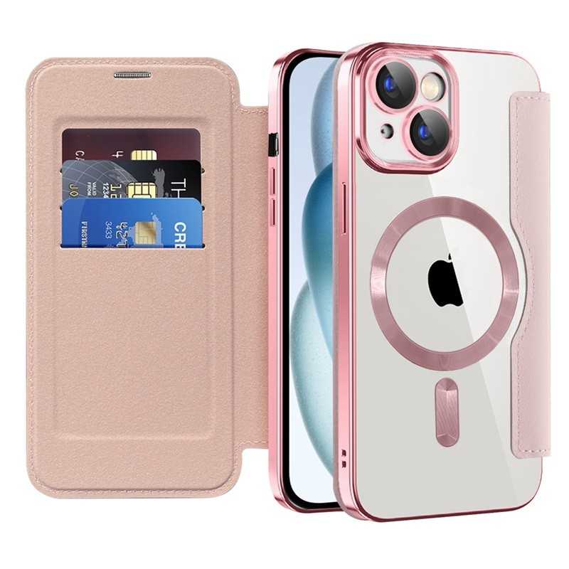 Flipové pouzdro Techsuit SmartMag Book pro iPhone 13 s odklápěcím krytem, slotem pro karty a podporou MagSafe nabíjení.