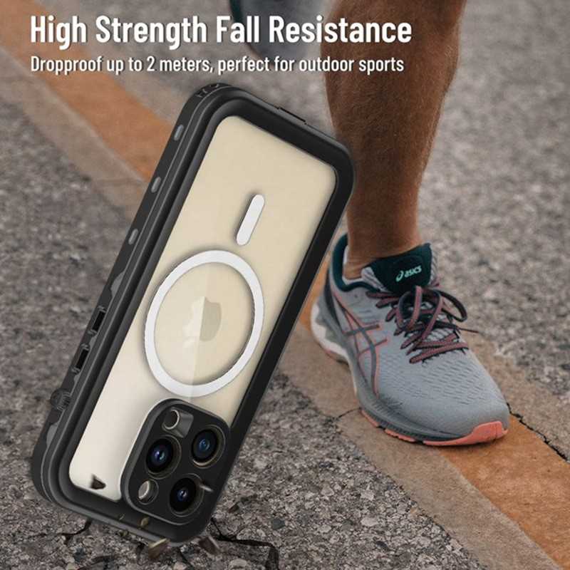 Vodotěsné pouzdro pro iPhone 16e s krytím IP68 je pouzdro, které chrání zařízení před vodou, prachem a nečistotami. Má certifikaci IP68, což znamená, že vydrží ponoření do vody až do hloubky 2 metrů. Pouzdro se skládá ze dvou částí: předního rámečku a zadního krytu. Díky těsnění a krytům portů si můžete být jisti, že Váš smartphone iPhone 14 Pro bude v bezpečí. Je ideální pro ty, kteří chtějí telefon používat ve vodě, ale i na pláži bez obav z vody a písku.