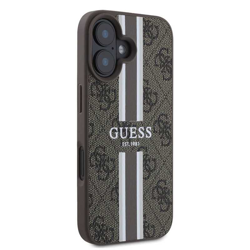 Guess Hardcase 4G Printed Stripes MagSafe pouzdro pro iPhone 16 Plus hnědé