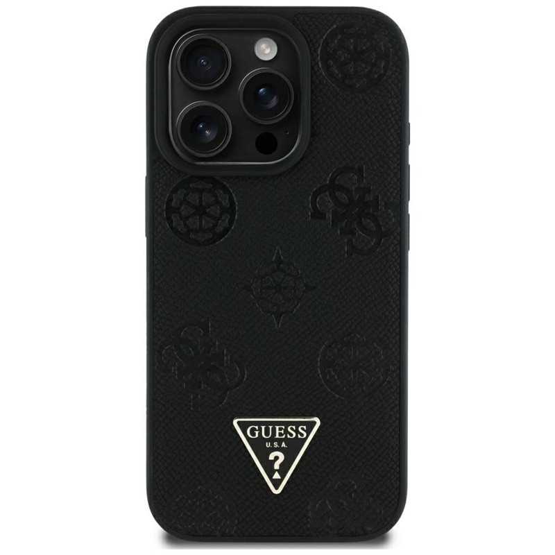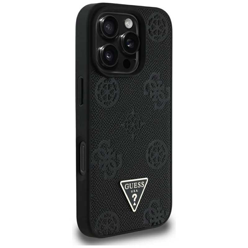 Guess Peony Grained Hot Stamp Triangle MagSafe pouzdro pro iPhone 16 Pro Max černé