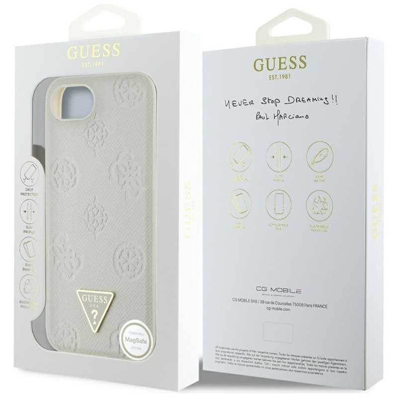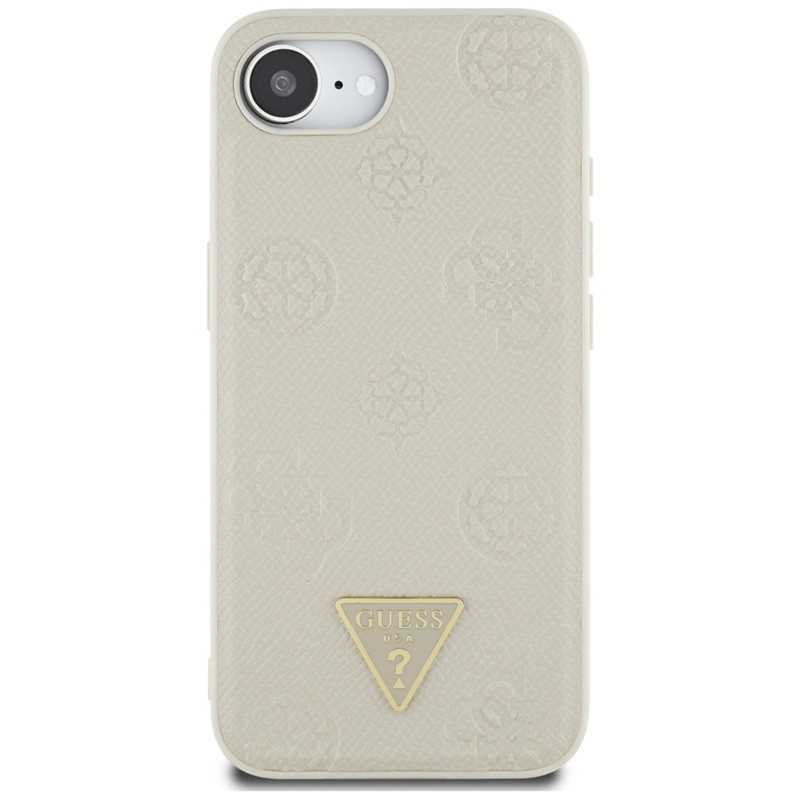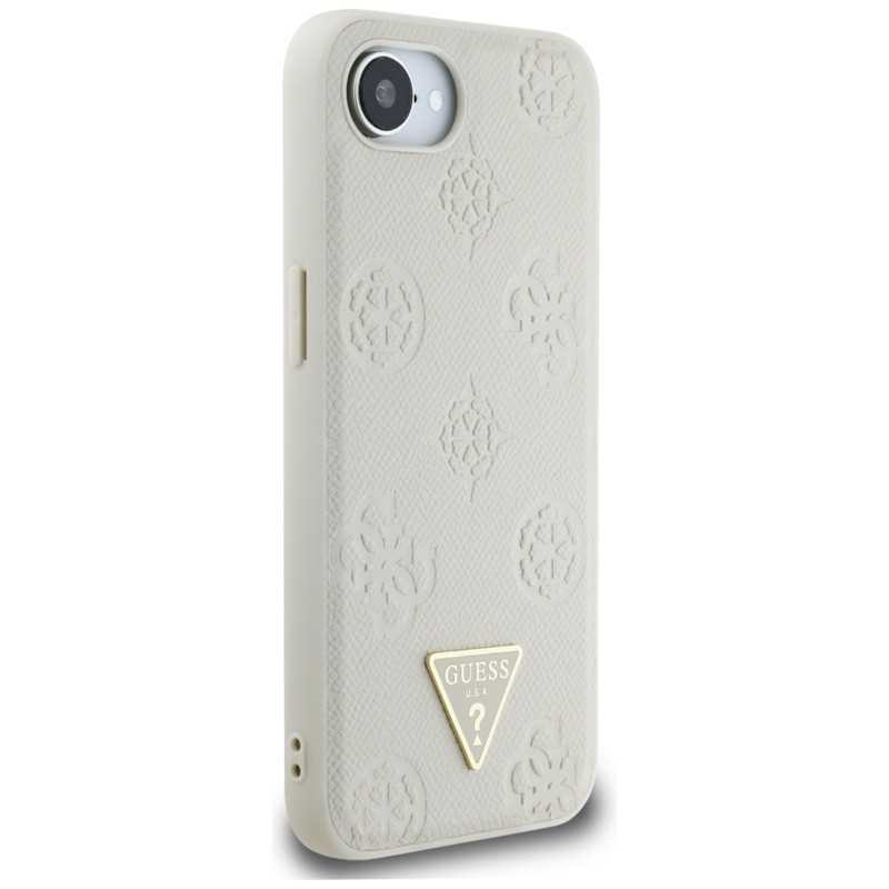 Guess Peony Grained Hot Stamp Triangle MagSafe pouzdro pro iPhone 16e béžové