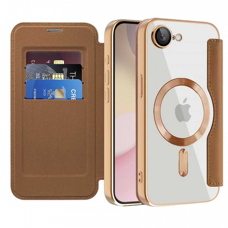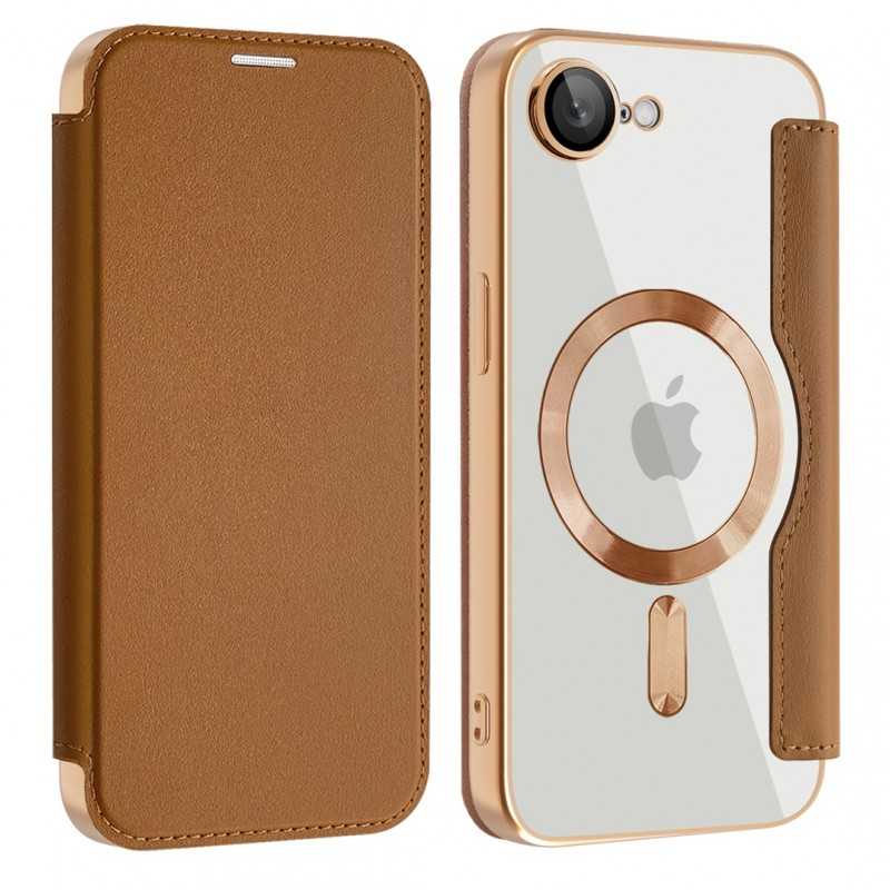 SmartMag Book MagSafe flipové pouzdro pro iPhone 16e hnědé