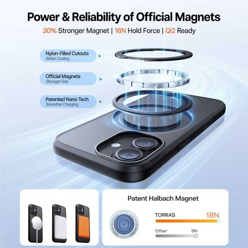 Díky inovativní technologii Tora-Smooth pouzdro Torras Ostand ProMagSafe Series zabraňuje otiskům prstů tím, že udržuje zadní část telefonu hladkou a čistou. Už žádné nepříjemné šmouhy – od této chvíle bude váš iPhone vždy vypadat nedotčeně, bez ohledu na to, jak často jej používáte.