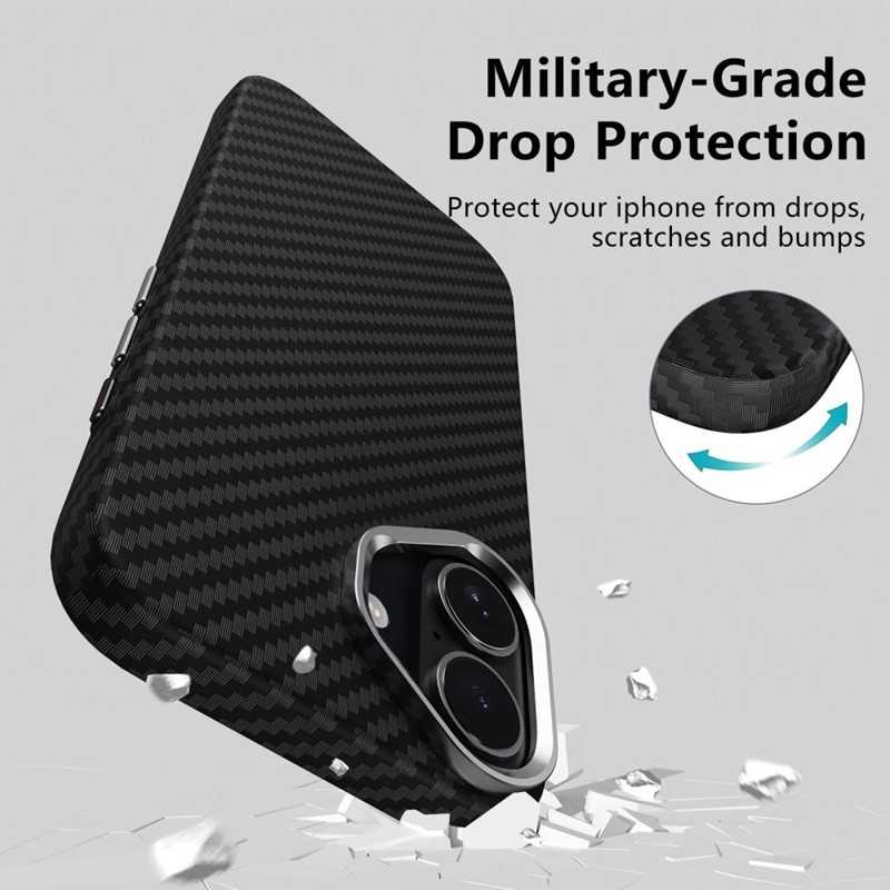 Pouzdro je vyrobeno z odolného polykarbonátu (PC) a poskytuje účinnou ochranu před poškrábáním, nárazy a každodenním opotřebením. Karbonová povrchová úprava mu dodává jedinečný charakter a zdůrazňuje dynamický a stylový vzhled.