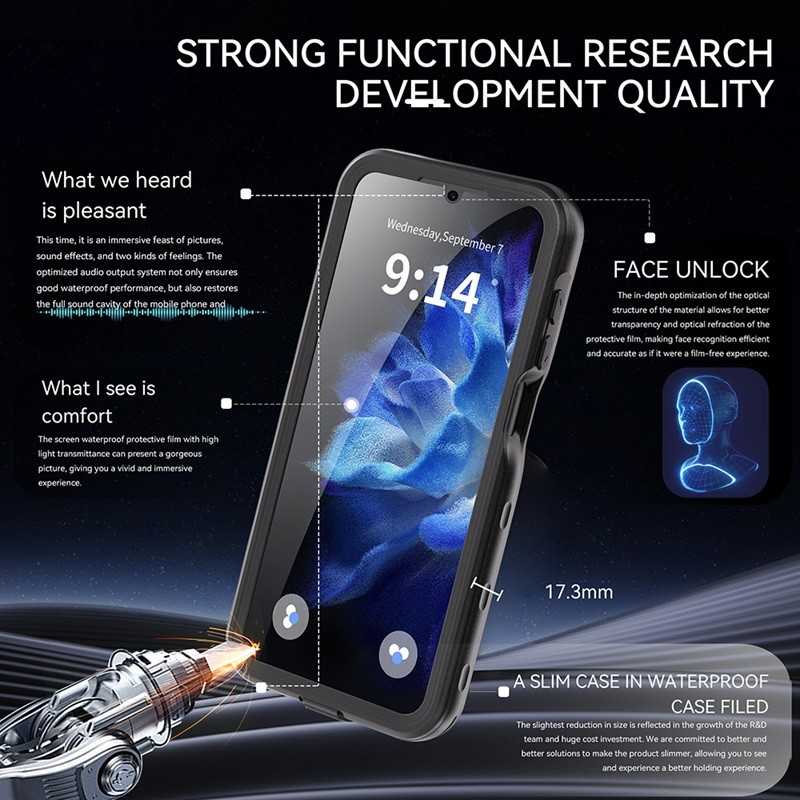 Vodotěsné pouzdro pro Samsung Galaxy A16 4G / A16 5G s krytím IP68 je pouzdro, které chrání zařízení před vodou, prachem a nečistotami. Má certifikaci IP68, což znamená, že vydrží ponoření do vody až do hloubky 2 metrů. Pouzdro se skládá ze dvou částí: předního rámečku a zadního krytu. Díky těsnění a krytům portů si můžete být jisti, že Váš smartphone Samsung Galaxy A16 4G / A16 5G bude v bezpečí. Je ideální pro ty, kteří chtějí telefon používat ve vodě, ale i na pláži bez obav z vody a písku.