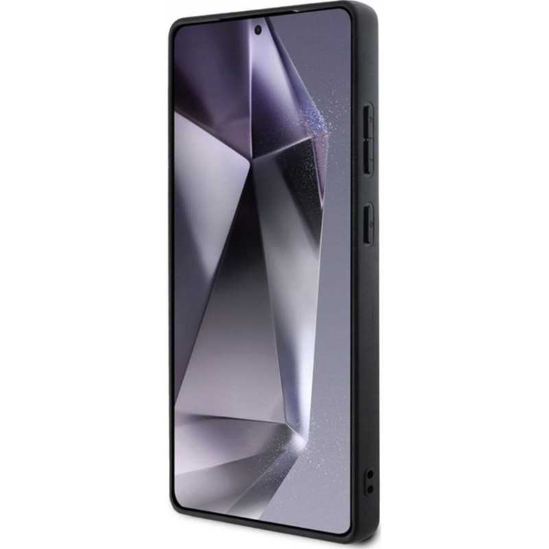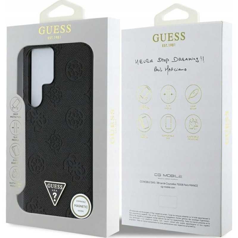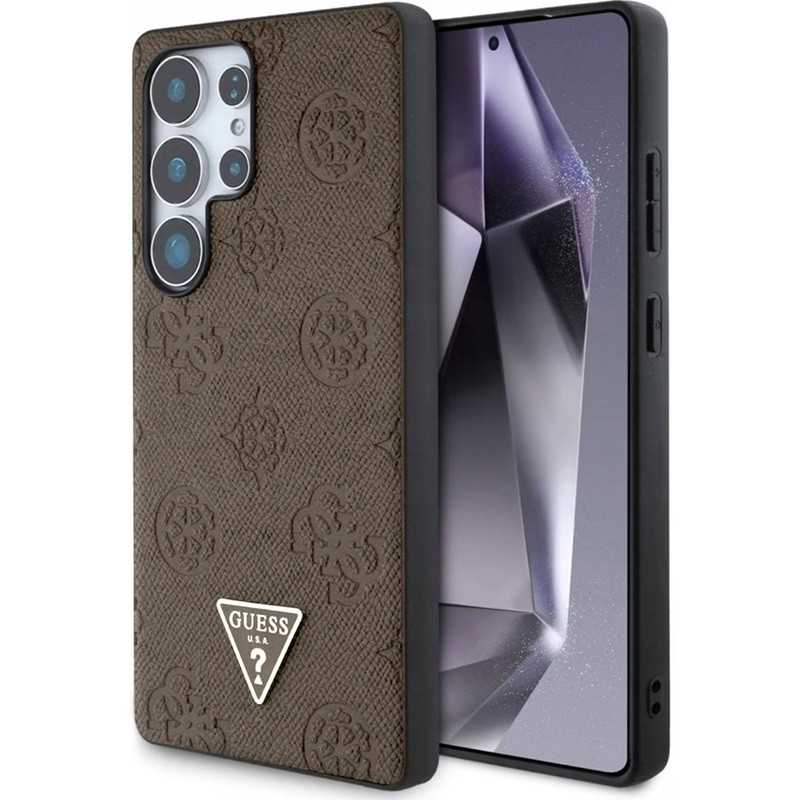 Guess Peony Grained Hot Stamp Triangle MagSafe pouzdro pro Samsung Galaxy S25 Ultra hnědé